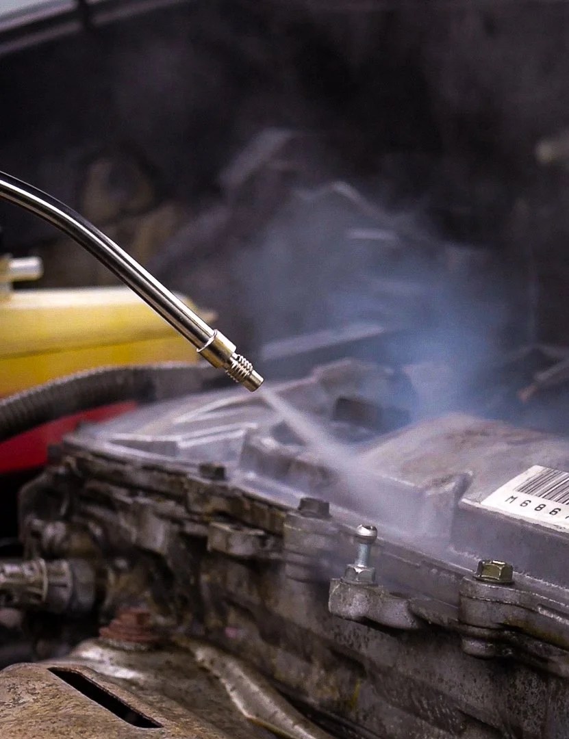 Steam machine doing engine detailing on a Toyota RAV 4 on Suffolk County